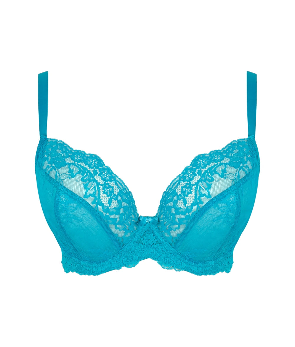The Panache Ana Plunge Bra in Ocean Blue is a beautifully feminine, non-padded style designed to offer a flattering plunge shape with reliable, everyday support. Featuring stretch lace top cups and thoughtful internal support, it creates an uplifted silhouette while maintaining a lighter, more delicate look.