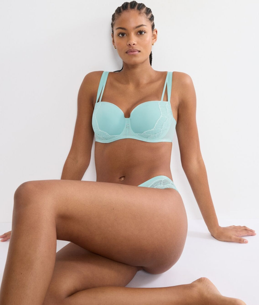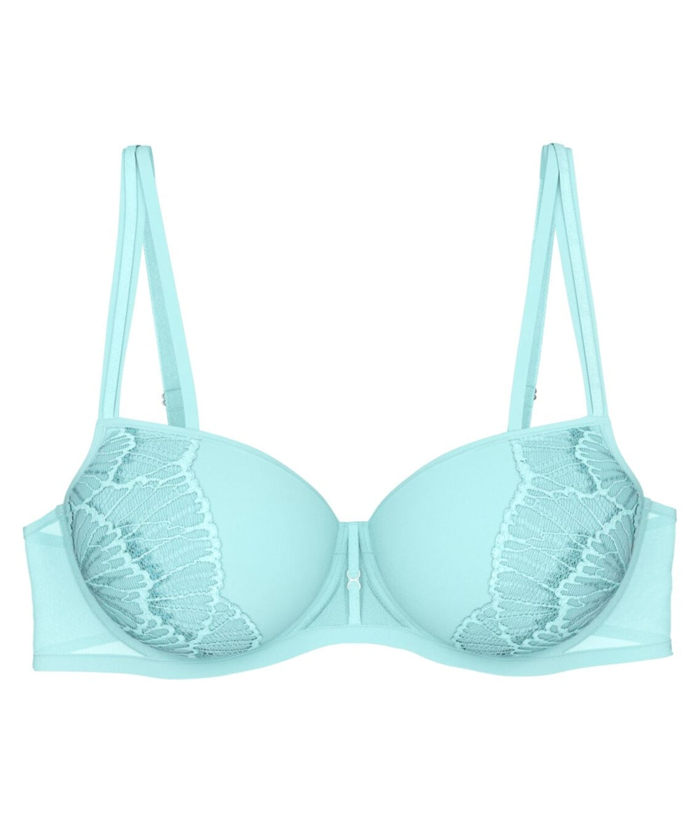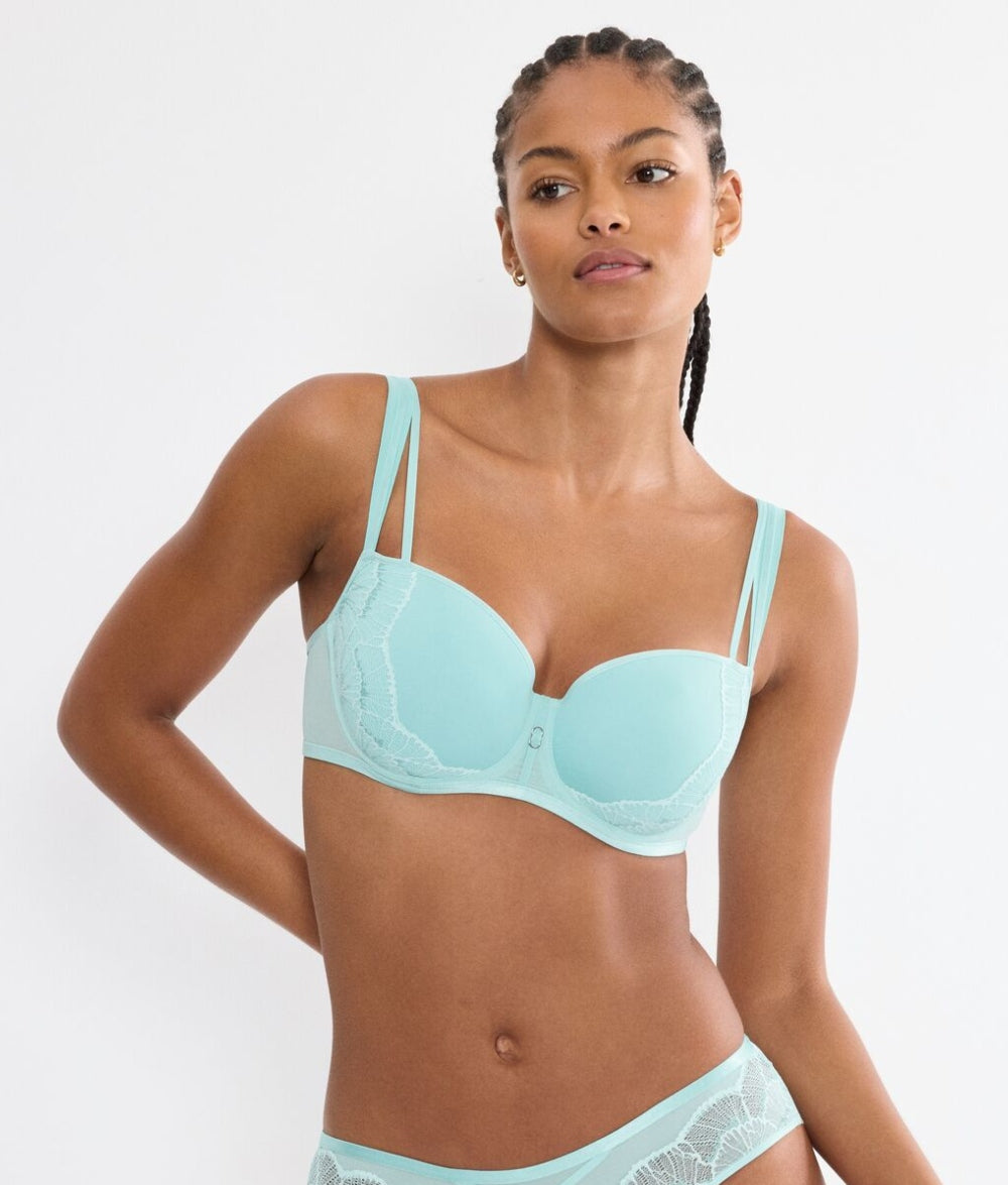 With its padded balconette shape and light spacer cups, this bra provides gentle lift and medium coverage, making it a lovely option for those who want a smooth silhouette with a touch of luxury.