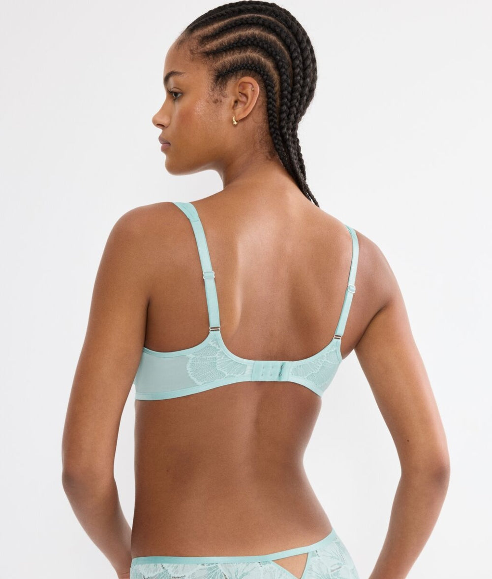 The Triumph Palina Moonlight Kiss WHP Bra in Capri Blue is a beautifully balanced style that combines subtle shimmer with everyday support. Designed with iridescent yarn and recycled lace, it offers a refined, modern look while maintaining a comfortable, wearable feel.